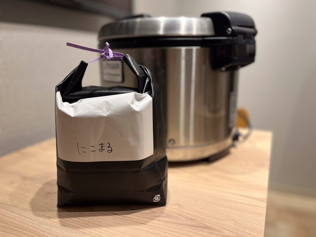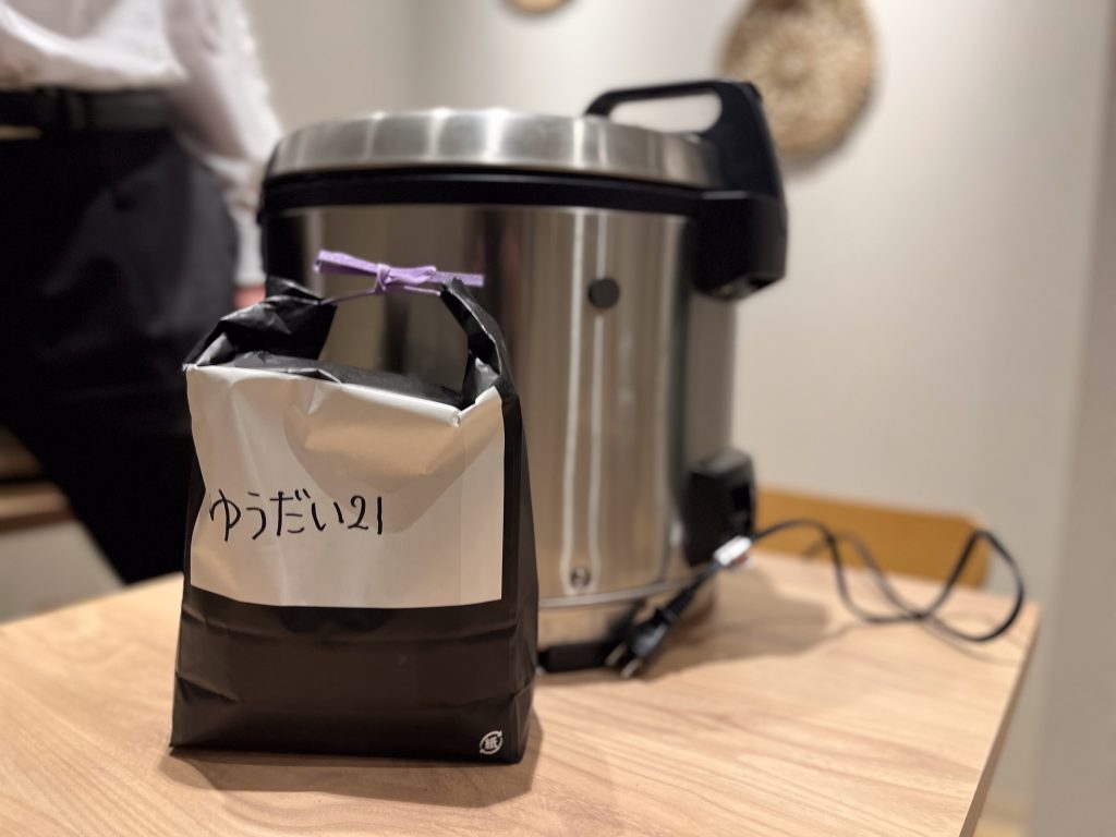 農家さんが持ってきてくれたのは、「にこまる」「ゆうだい21」という2種類のお米。