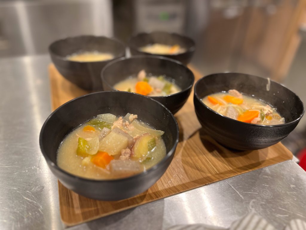 豚汁にいれたねぎやさつまいもも農家さんが作って持ってきてくれたものです。